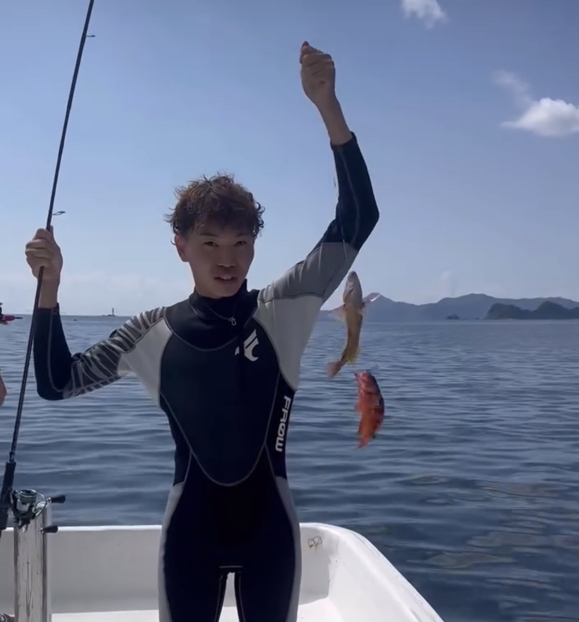 施設前の係留させたいかだの上から、撒き餌で魚をおびき寄せて魚を釣ることもできます。